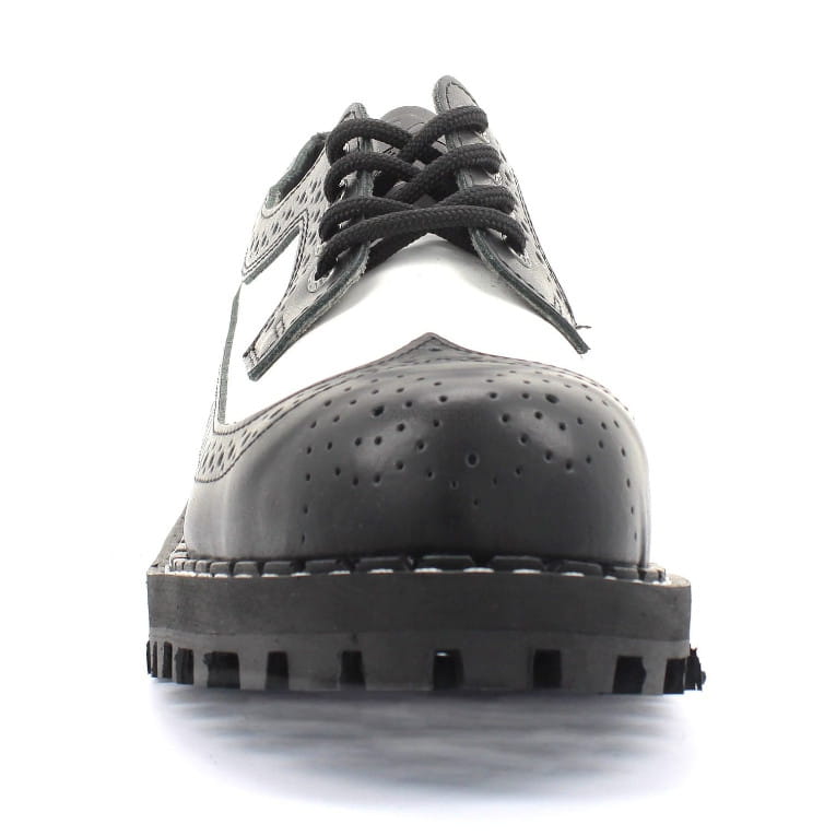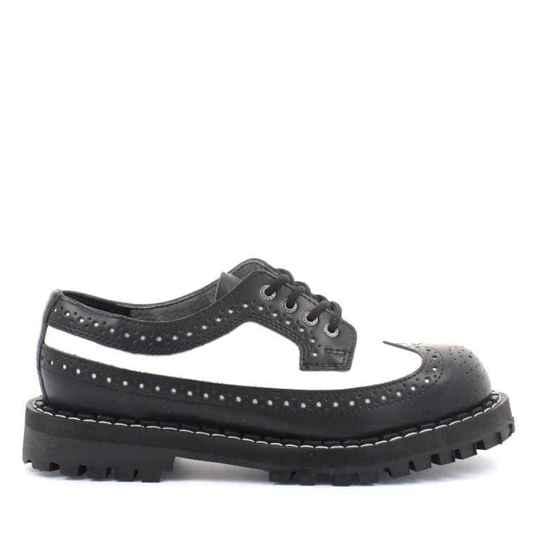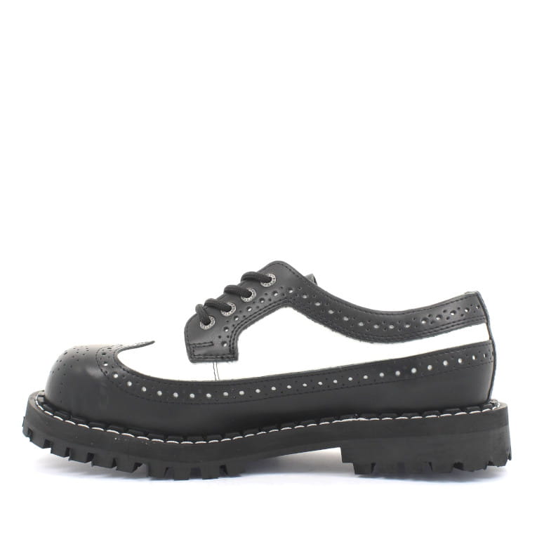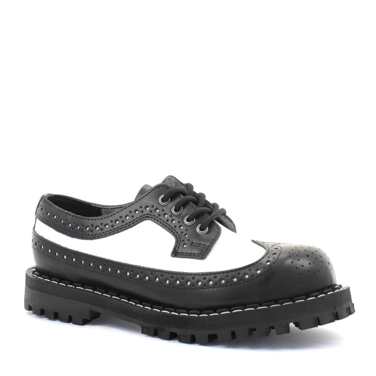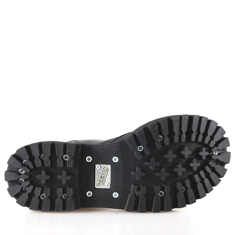 Kultowy model glanów STEEL w wersji 4-dziurowej, wyszywanymi skórzanymi aplikacjami oraz oczywiście ze stalowym noskiem.